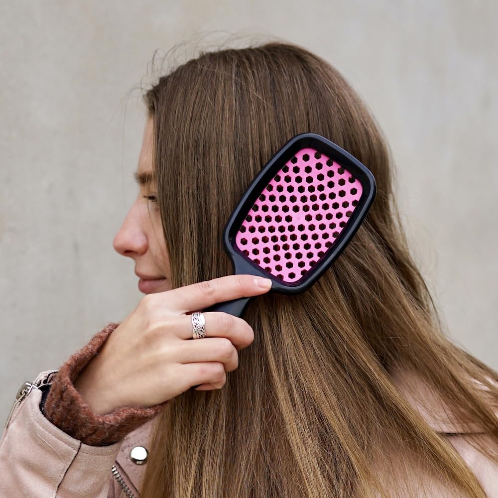Like a maestro drawing out the perfect notes, our brush's design caters to every hair type. Whether you sport waves, curls, or straight locks, it turns every brush stroke into a dance. And on hurried mornings? Its vented architecture promises swifter blow drying, turning chaotic rushes into composed performances.